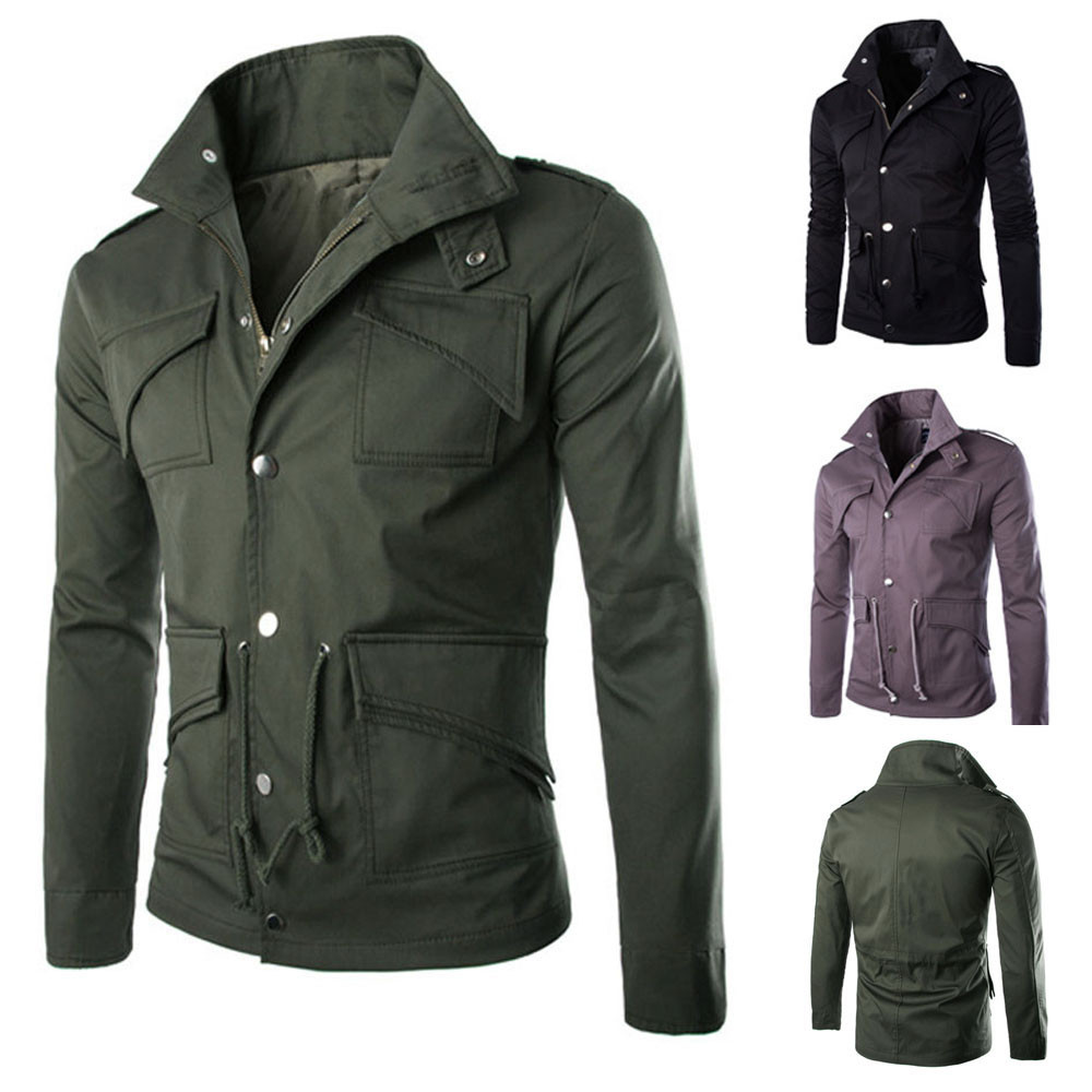 Fashion Men S Slim Fit Stand Collar Coat Tops Military Jacket