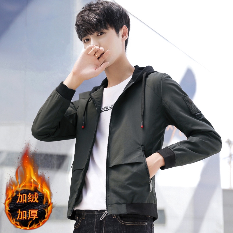 Fashion Korean Winter Men S Jacket Letter Print Pocket With Velvet