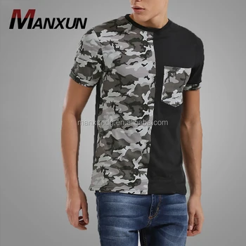 2017 Customized Summer Cut Sew Camo Panel T Shirt Fashion Design
