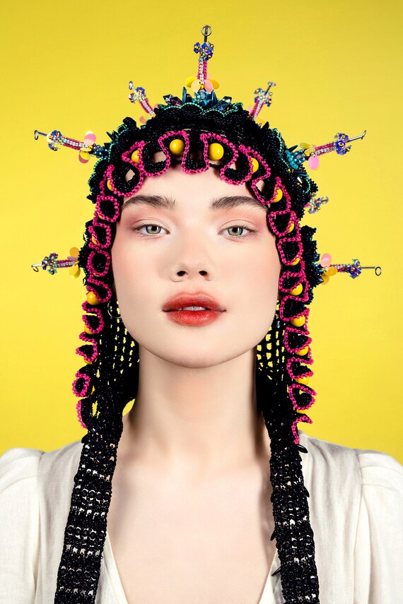 Avant Garde Shaman Black Crochet Colorful Ear Flap Hat Etsy