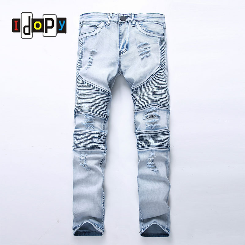 Fashion Men S Ripped Skinny Biker Jeans Destroyed Frayed Slim Fit