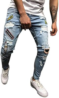 Torn Jeans Blue Ripped Skinny Slim Jeans Men Pants Trousers