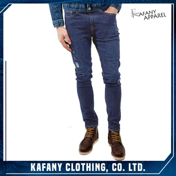 Ripped Jeans Dark Blue Men Jeans Super Skinny Elastic Pant Fashion