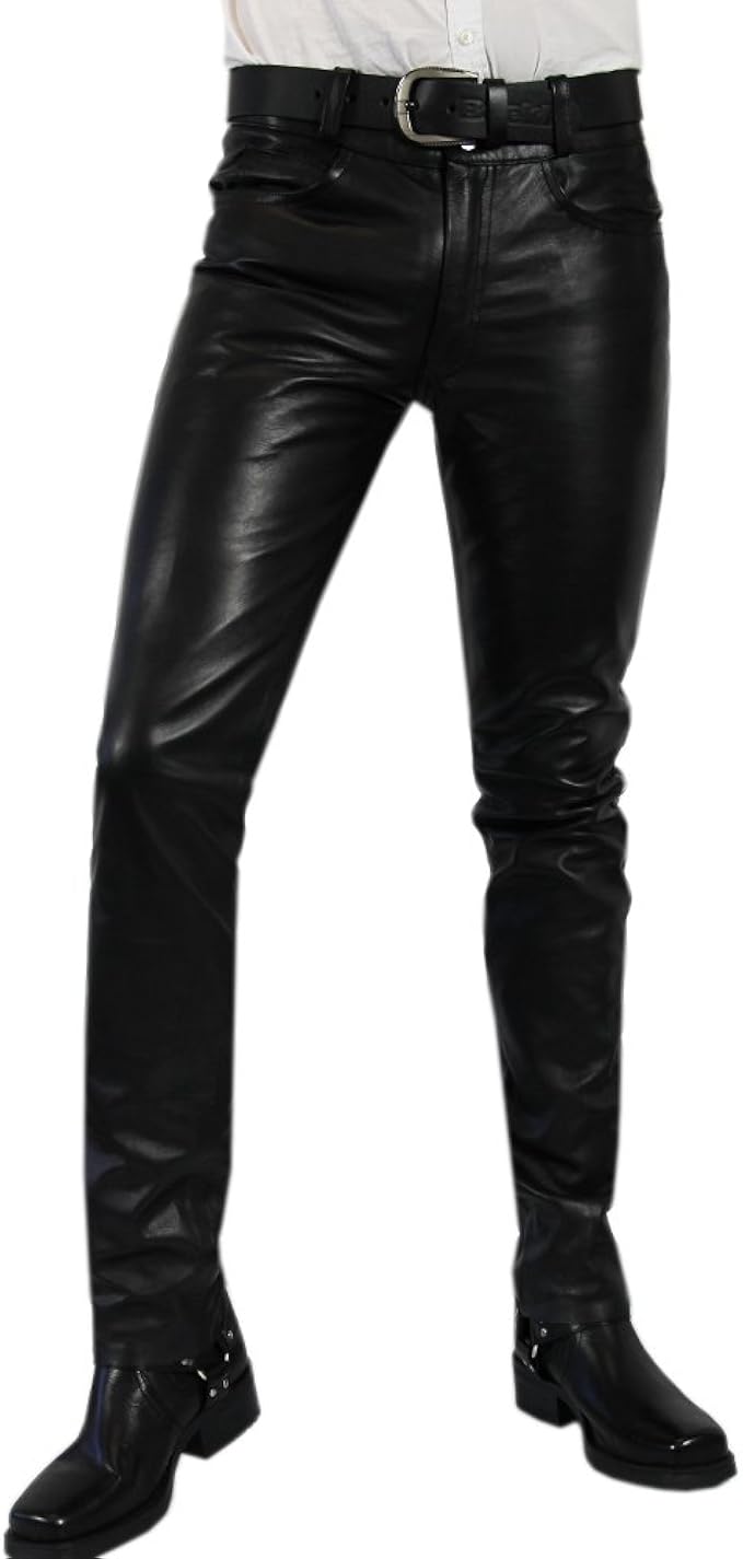 Fashion Mens Leather Pants New Punk Trousers Skinny Genuine
