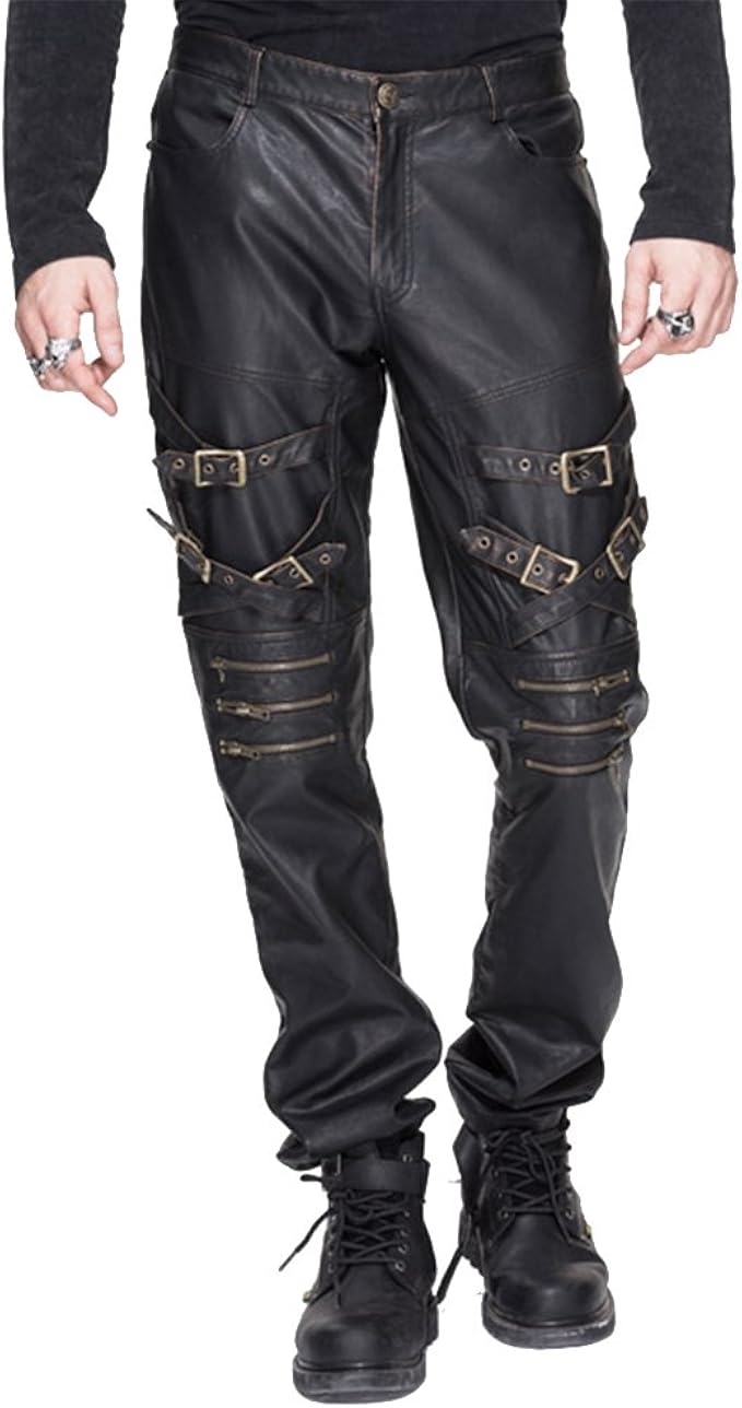 Punk Fashion Men Casual Trousers Steampunk Retro Leather Pants