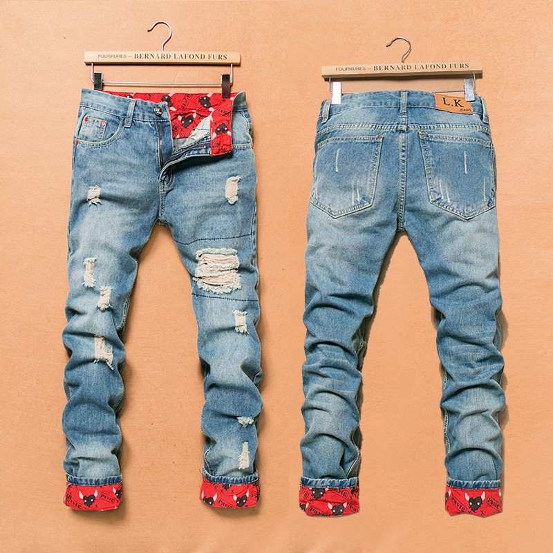 2018 Men S Fashion Spring Hole Long Pencil Pants Ripped Jeans Slim