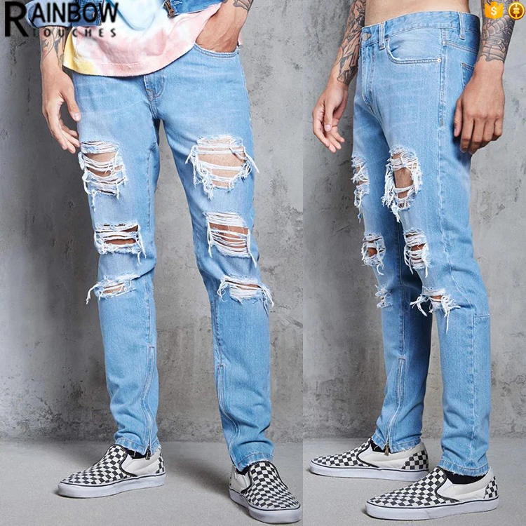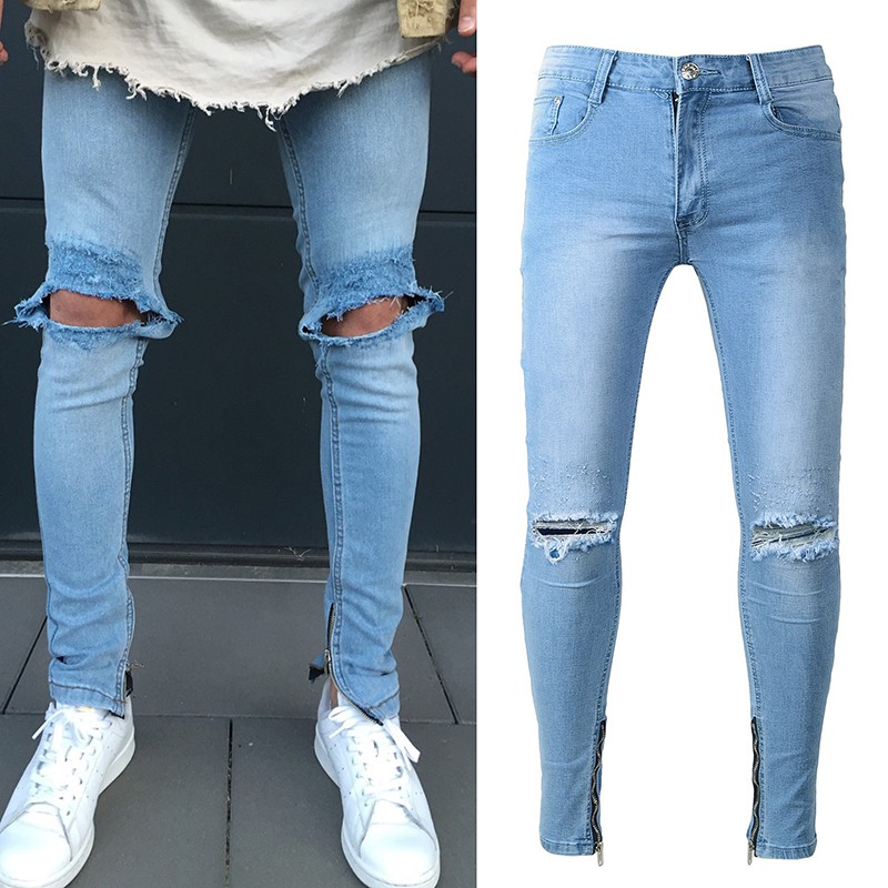 Light Blue Men S Street Fashion Ripped Jeans Rebelsmarket