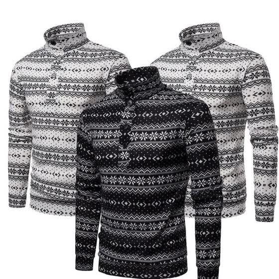 Winter Turtleneck Sweater Men Knitted White Christmas Sweater Men