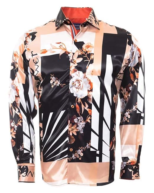 Oscar Banks Floral Japanese Style Fashion Satin Mens Shirt