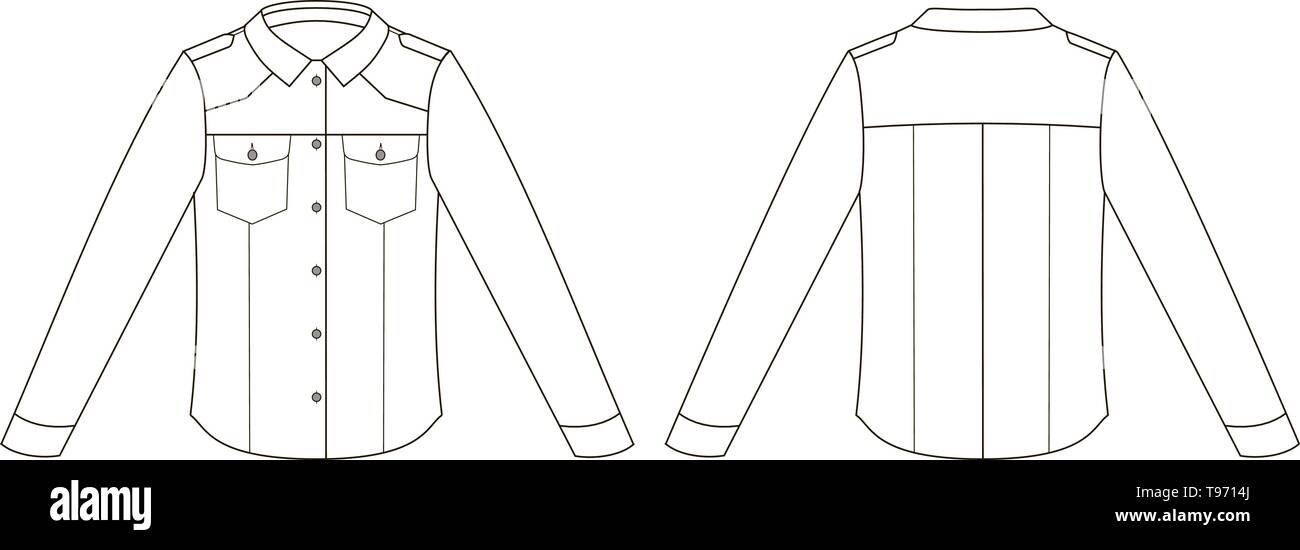 Fashion Technical Sketch Men Denim Jacket Stock Illustration