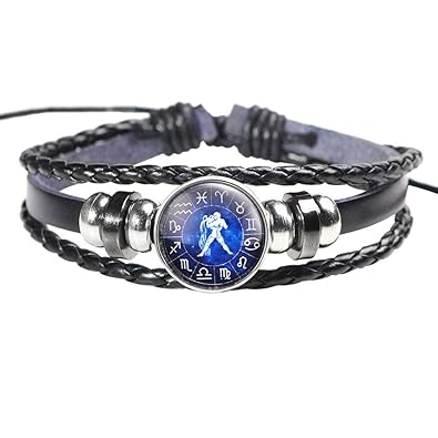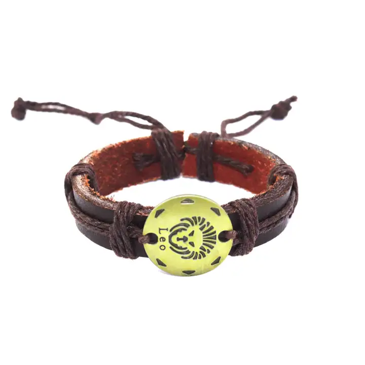 Leather Bracelet Zodiac Signs Men Fashion Jewelry Free Just Pay