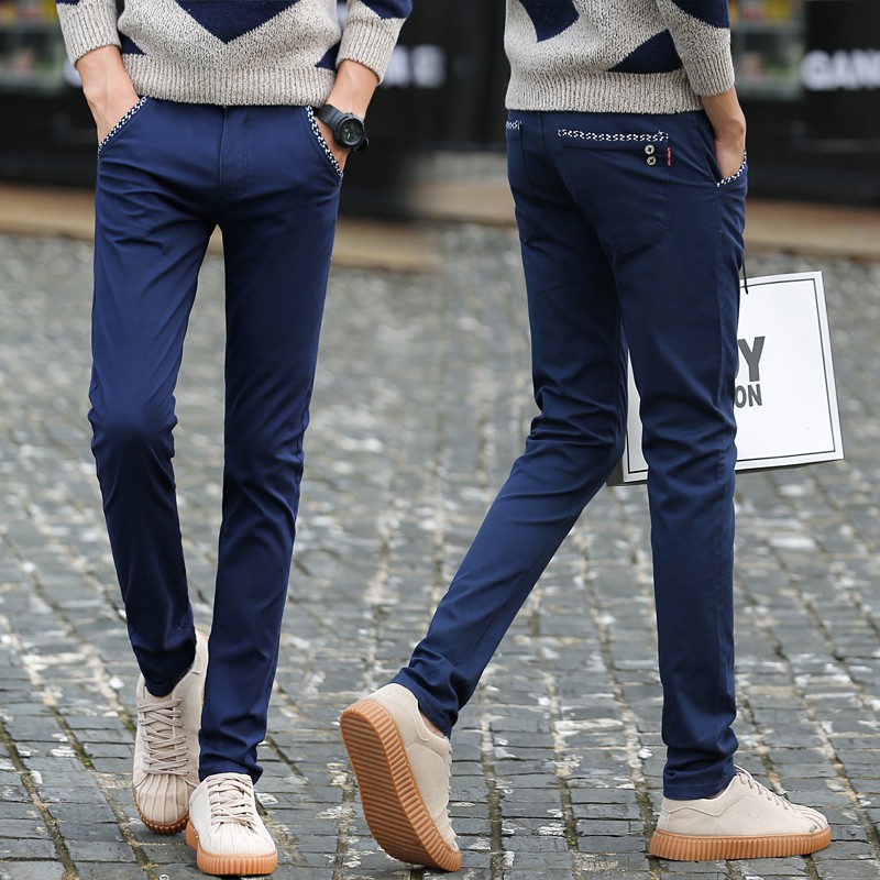 Fashion Autumn Pants Solid Color Casual Skinny Slim Fit Dress Mens