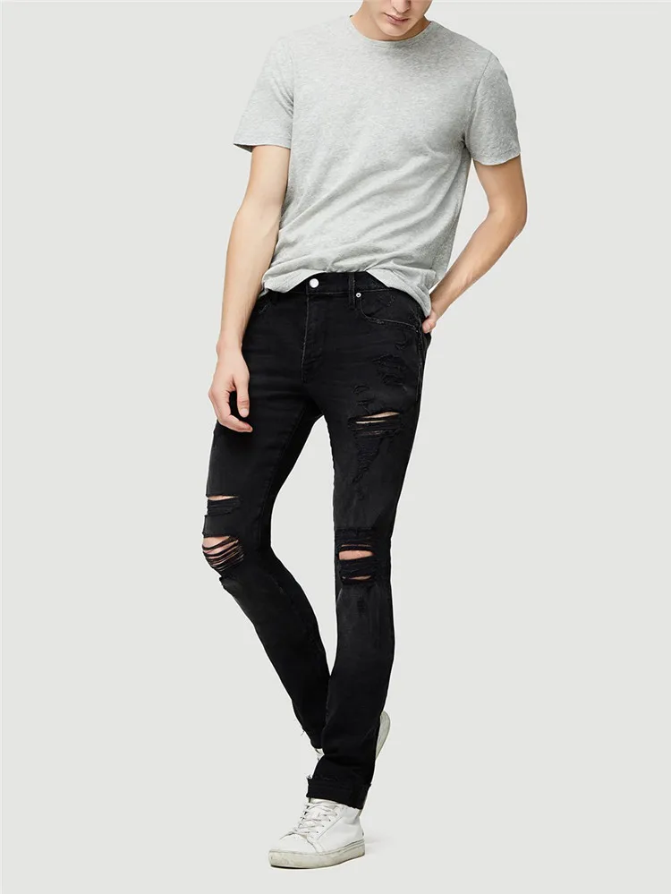 2019 Fashion Mens Black Jeans Streetwear Distressed Denim Pants