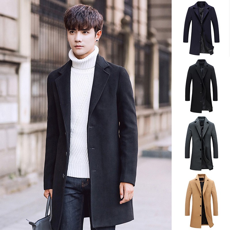 2019 Fashion Men S Wool Coat Winter Trench Coat Outwear