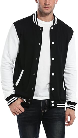 Coofandy Mens Slim Fit Varsity Baseball Jacket Bomber Cotton