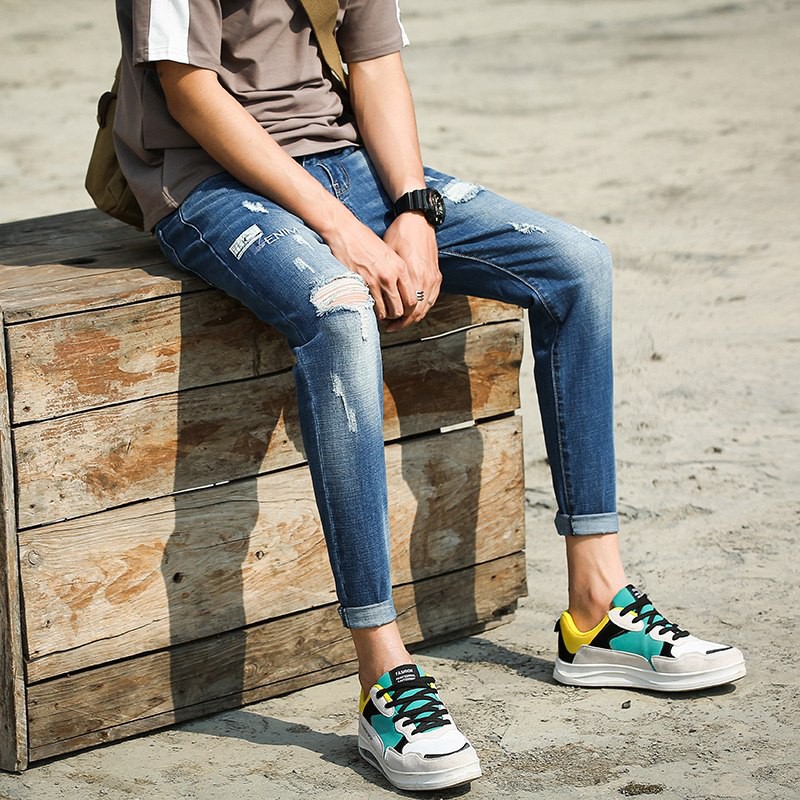 Ankle Length Pencil Jeans Pants Men Korean Fashion Street Style