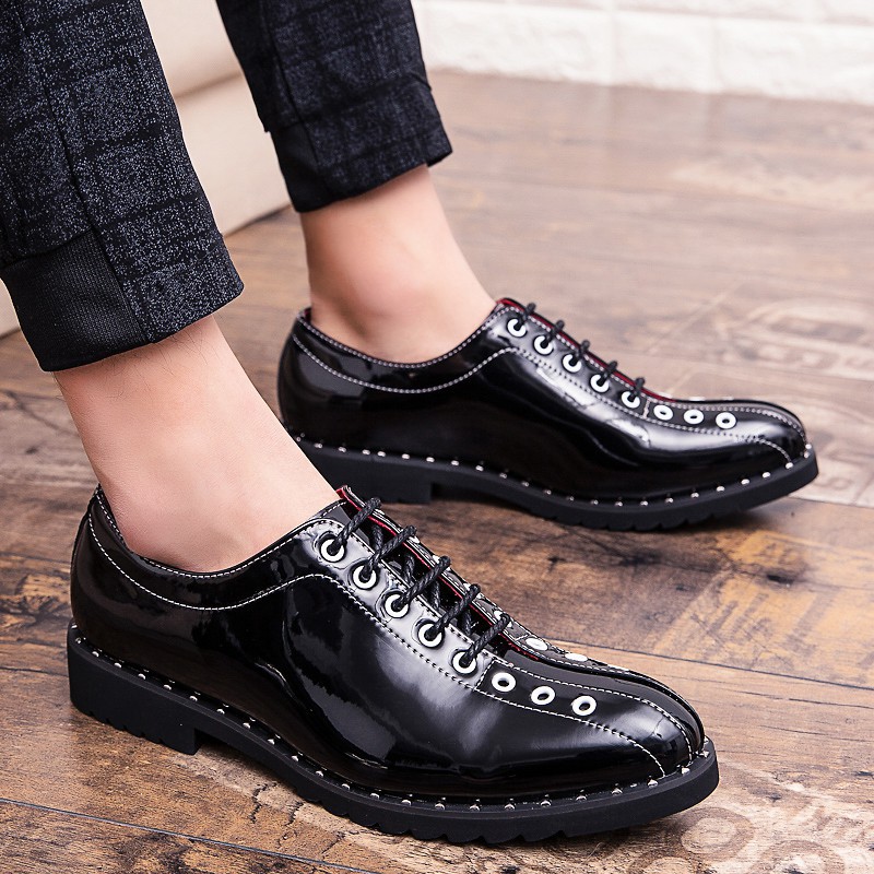 New Men Dress Shoes Shadow Patent Leather Luxury Fashion Groom