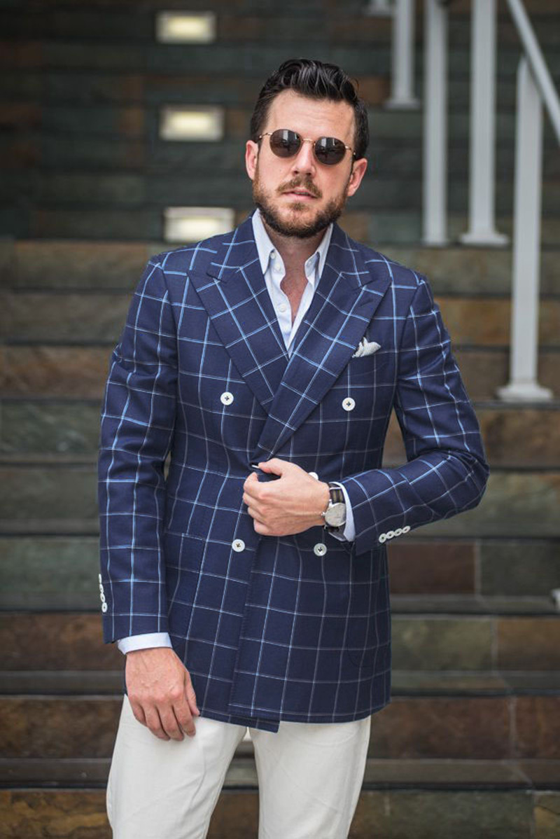 Fashion Men Suits Plaid Dress Formal Groom Tuxedos Check Wedding