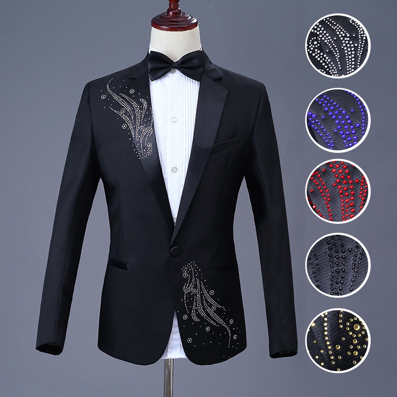 New Fashion Men Suits Black Embroidery Blazers Slim Fit Red White
