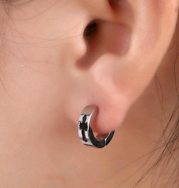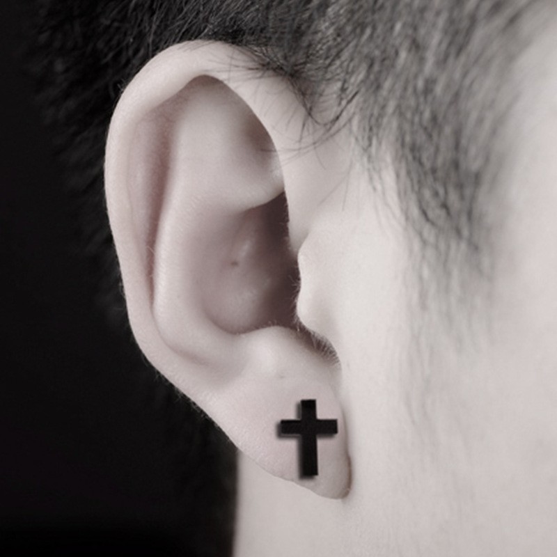Fashion Men Titanium Steel Stud Earrings Black Cross Style