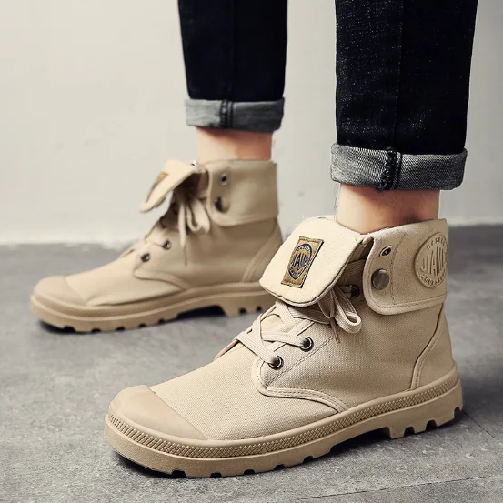 Winter Men Leather Boots Korea Style Fashion Canvas Upper Military