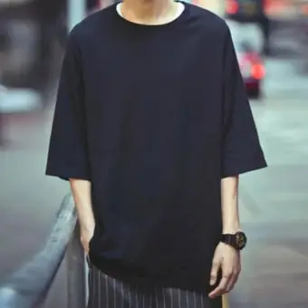 Summer Male T Shirt Drop Shoulder Loose Fit Short Sleeve Tee