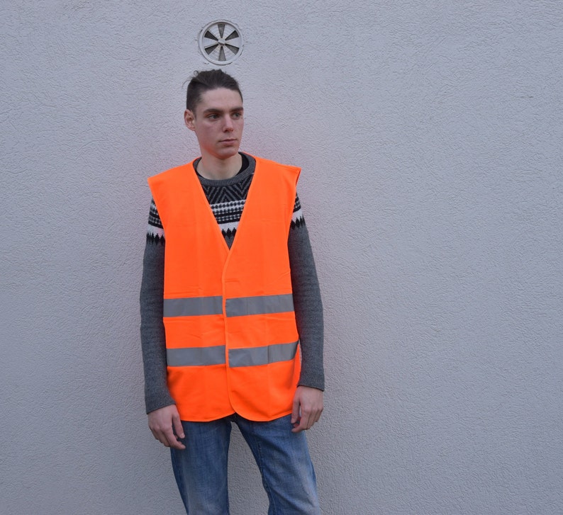 Men S Hi Vis Reflective Gilet Vintage 90 S Y2k Neon Etsy