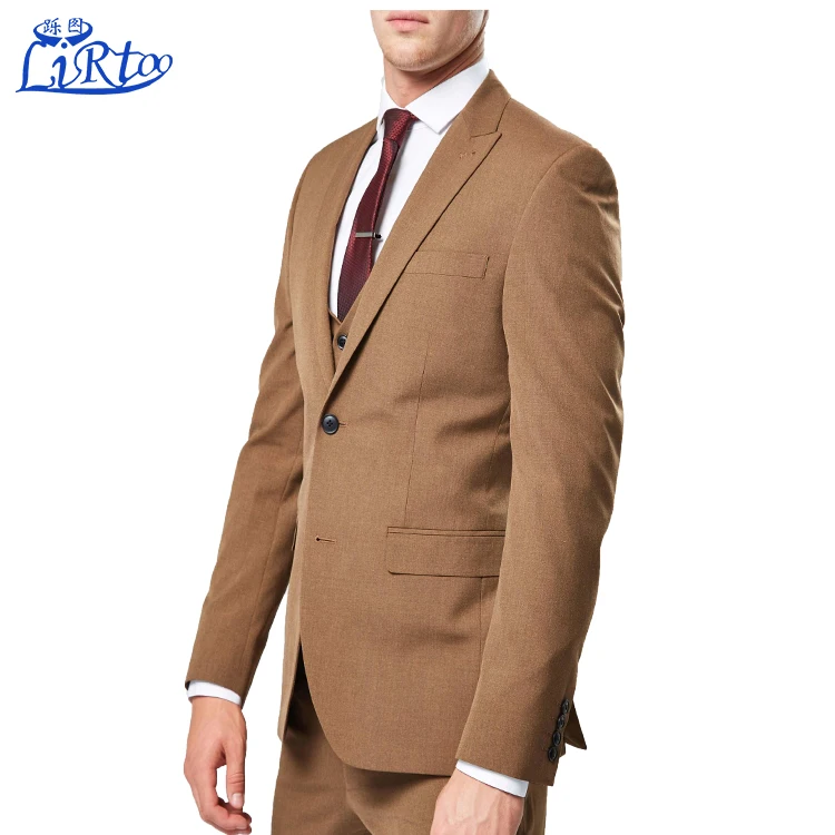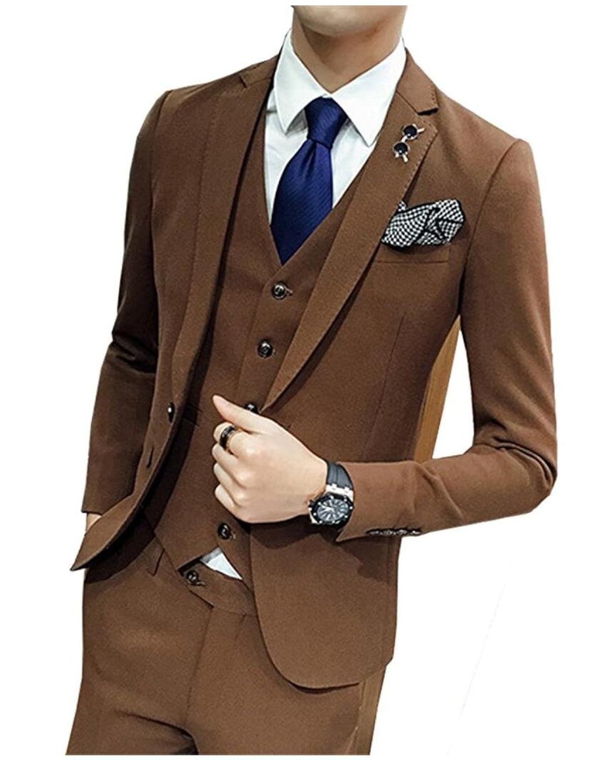 Men S Fashion Brown Suit Slim Fit 3pc Blazer Vest Pants One Button