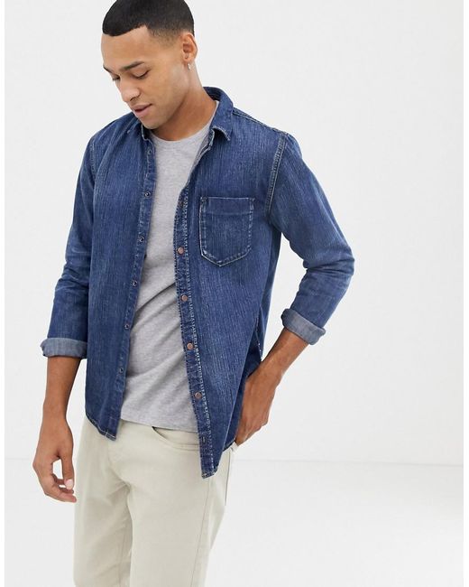 Denim Shirts Mens Denim Jean Button Down Long Sleeve Shirt Buy