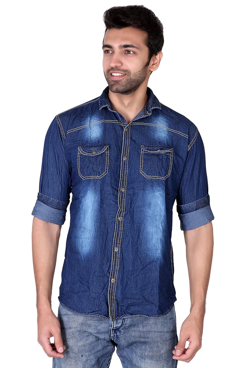 Buy Villain Men S Casual Denim Shirt Slim Fit Button Down Shirt