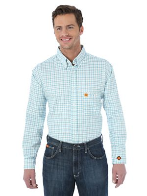 Men S Wrangler Fr Flame Resistant Long Sleeve Button Down Plaid
