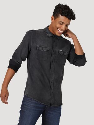 Mens Snap Button Down Denim Shirt In Black Overdye 75 Dstld