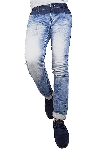 Blue Slim Fit Unfinished Jeans For Men Sm Kollectionz
