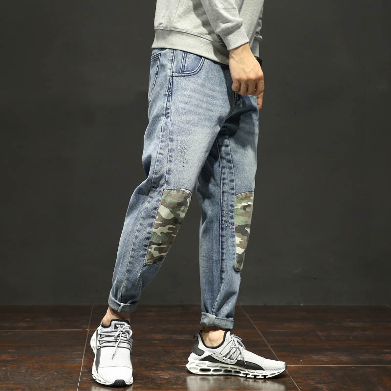 Casual Irregular Camouflage Patch Japan Style Men Jeans Fanfreakz