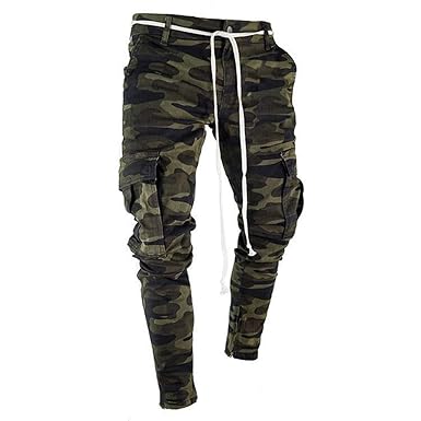Men Skinny Jeans Stretchy Jeans Stretch Pant Military Camouflage