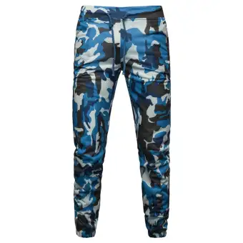 Cool Men Casual Pants Blue Camouflage Slim Fit Hip Hop Pencil