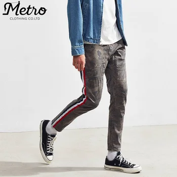 China European And American Fashion Men S Jeans With Ribbon