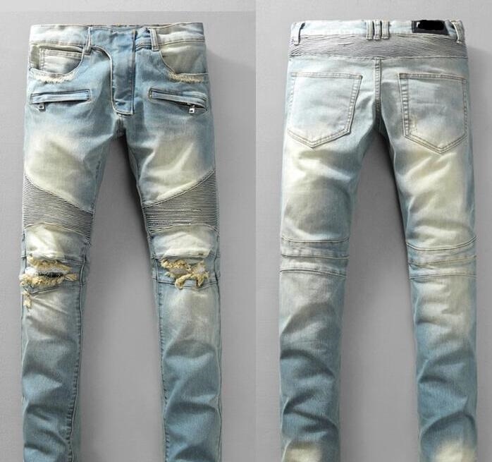 New Mens Jeans Brand Destroyed Hole Jeans Straight Men S Robin