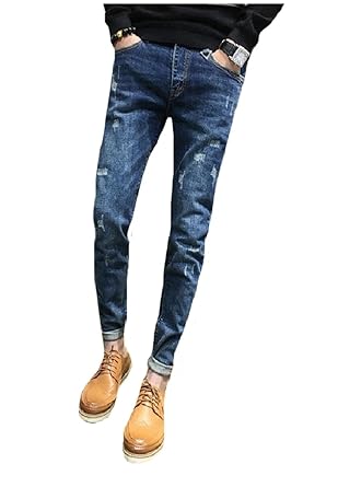 Men S New Stylish Cool Rolled Cuff Slim Fit Distressed Ripped Blue