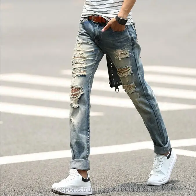 Distressed Denim Jeans Pants Brand Men S Denim Pants Pleated