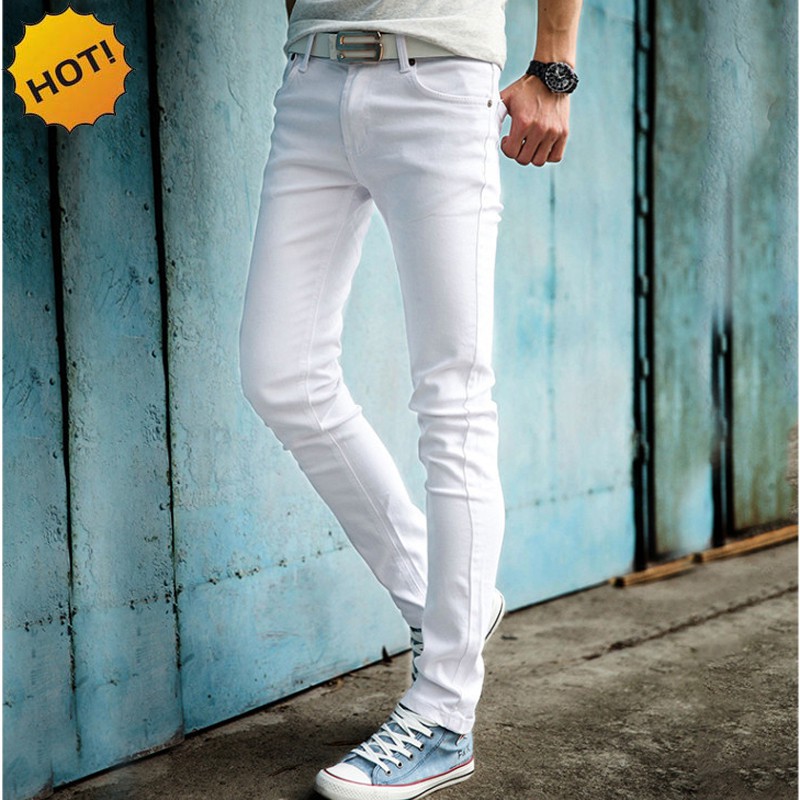 White Skinny Jeans Men Hip Hop Pencil Pants Teenagers Boys Casual