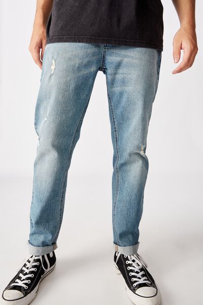 New Trendy Men S Rolled Cuff Stretch Fit Blue Ripped Jeans