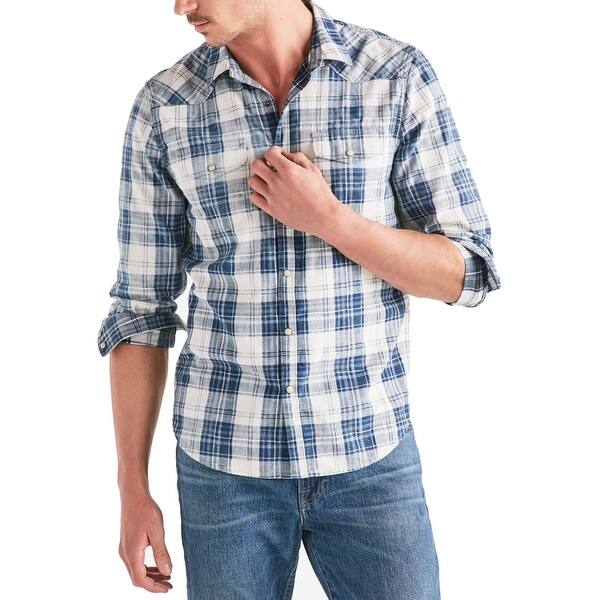 Shop Lucky Brand Mens Shirt Blue Size Xl Plaid Print Dual Pocket