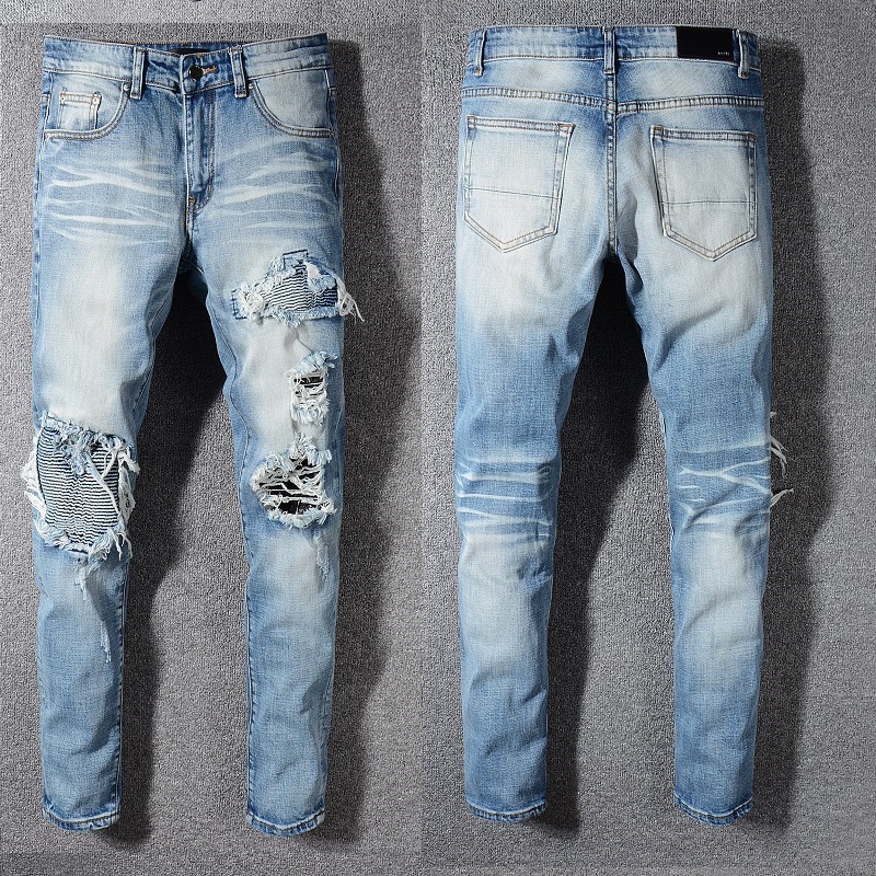 2019 Brand Mens Jeans Distressed Ripped Biker Jeans Slim Fit