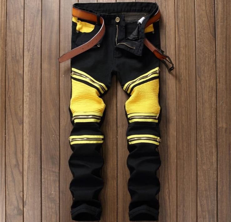 New Fashion Men S Biker Jeans Pants Slim Fit Pleated Motocycle