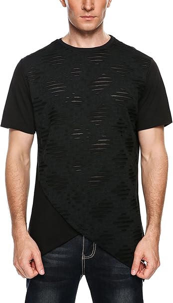 Coofandy Mens Casual Hipster Hip Hop Swag Curved Hem Short Sleeve