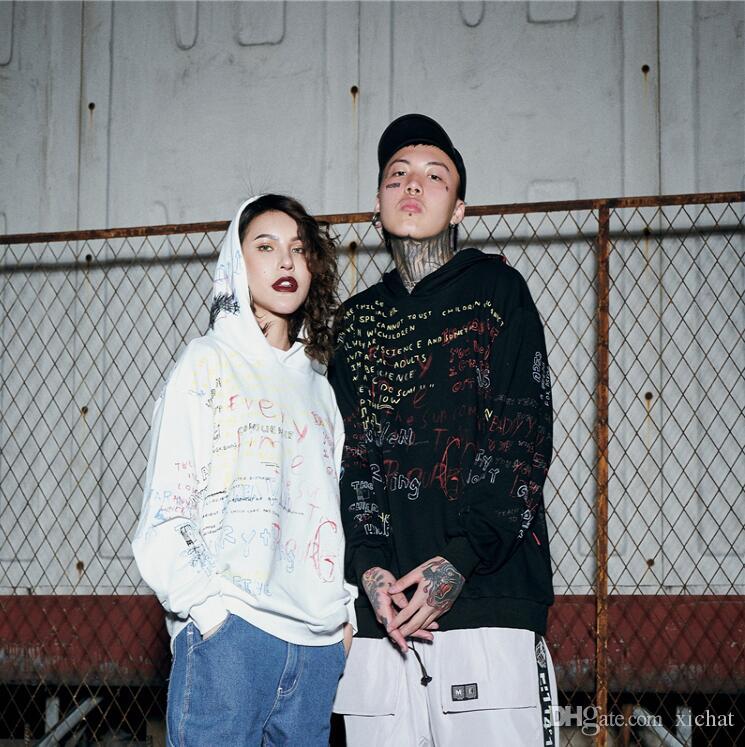 Harajuku Graffiti Hoodie Sweatshirt Mens Hip Hop Pullover Hoodies