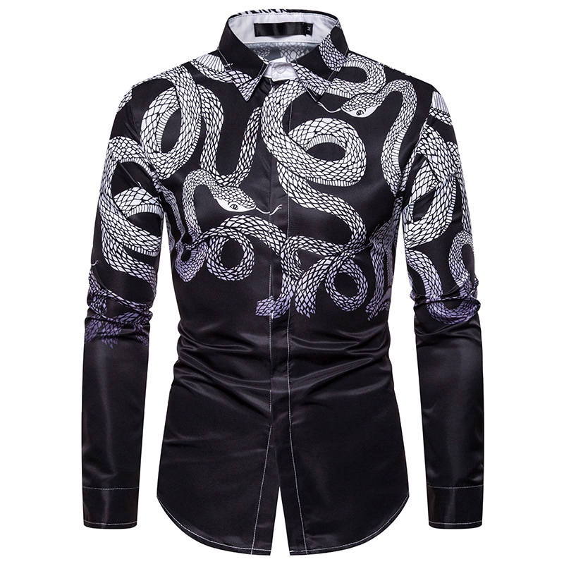 Mens Casual 3d Snake Printed Shirt Fashion Business Fit Long