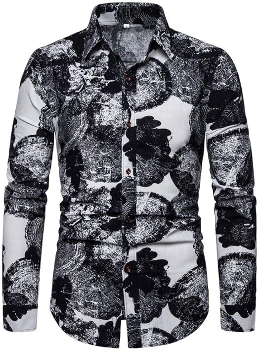 Loldeal Printed Shirts Mens Fashion Winter Long Sleeved Shirts