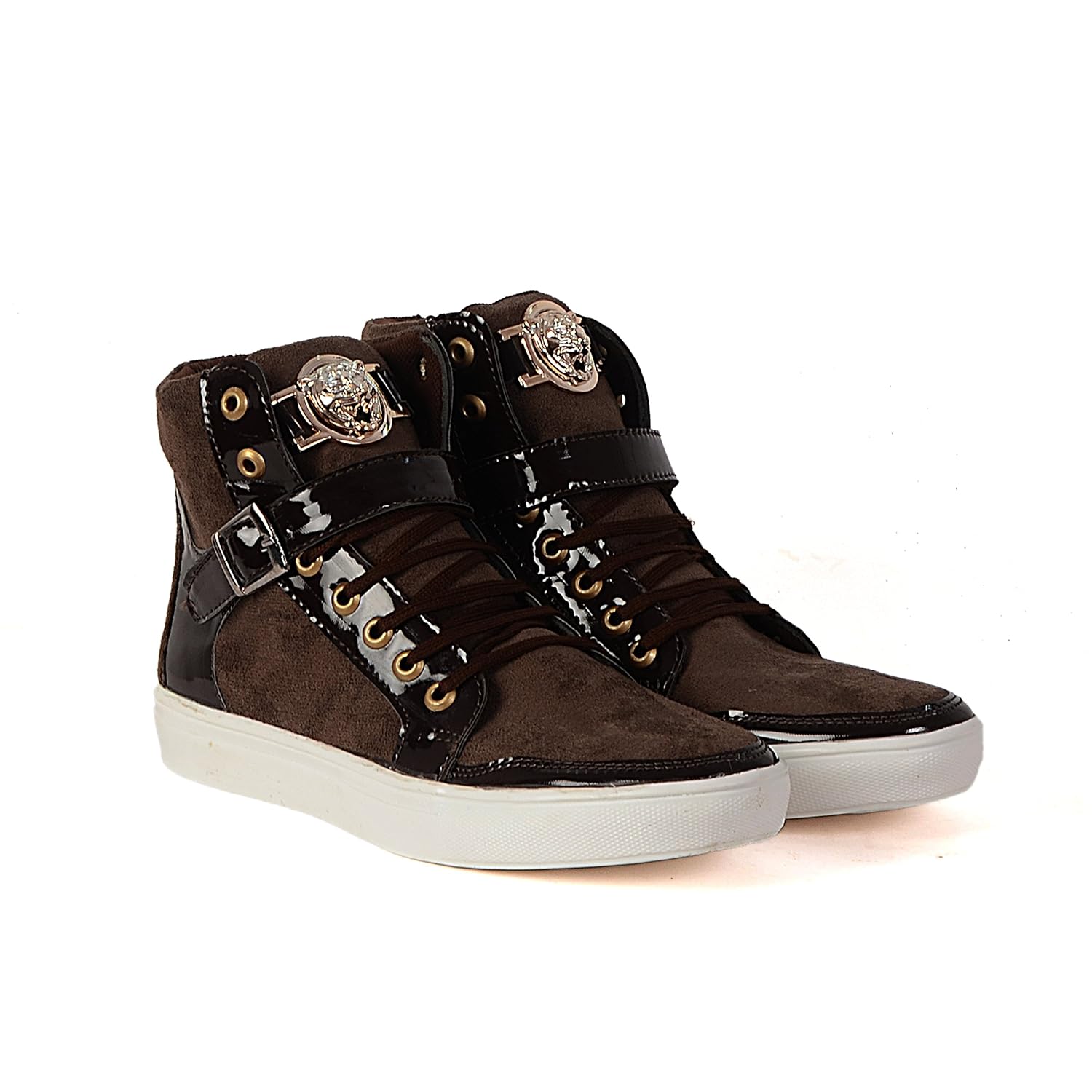 Buy Evlon Men S Fashion Lace Design High Ankle Classy Brown Canvas